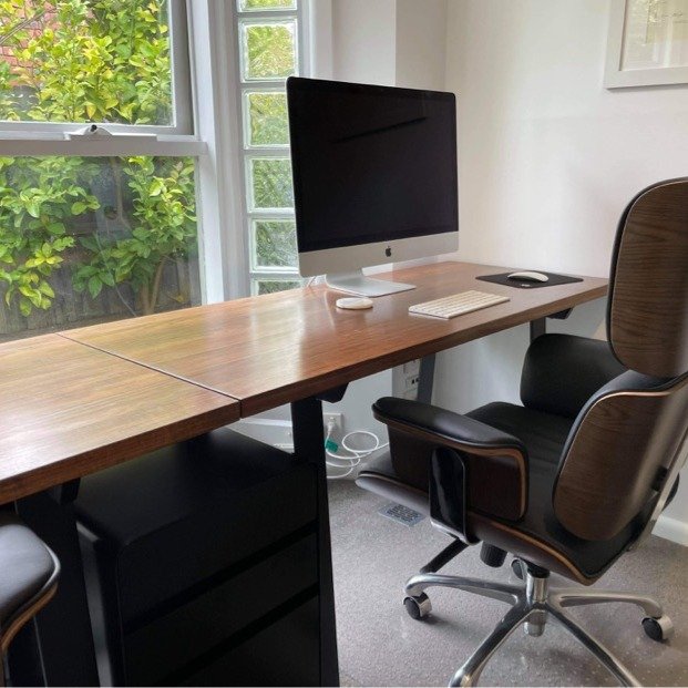 A pair of matching Tasmanian Blackwood desks with black steel legs. Finished with Osmo PolyX.