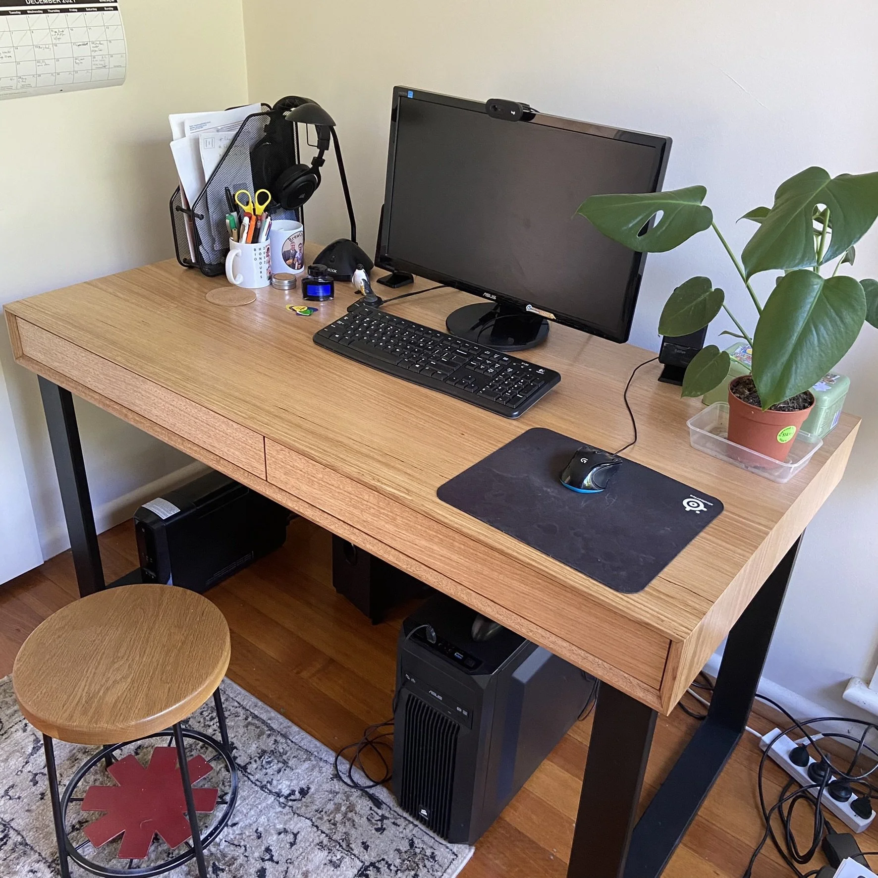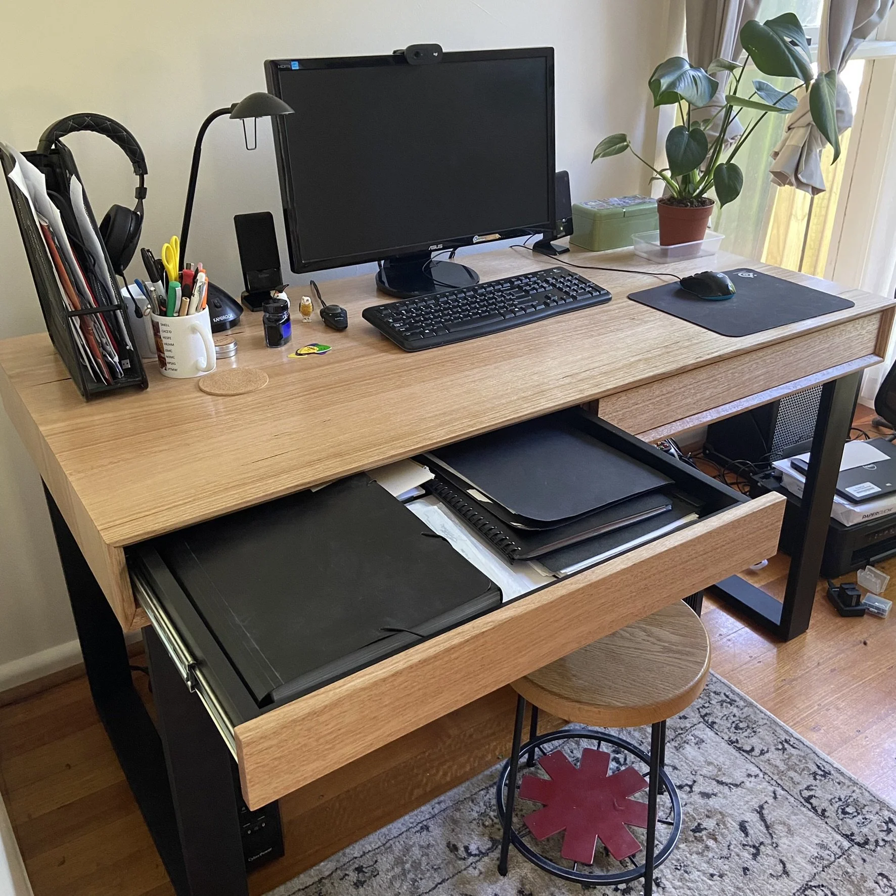 Tas Oak DeskSolid Tas Oak desk top wrapping two push to open drawers. Black steel hoop legsStarting at $3500 Slide 1 Slide 1 (current slide) Slide 2 Slide 2 (current slide) Slide 3 Slide 3 (current slide) Slide 4 Slide 4 (current slide) Slide 5 Slide 5 (current slide) Slide 6 Slide 6 (current slide) Send us message to get in touch! RETURN
